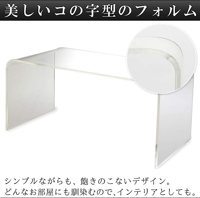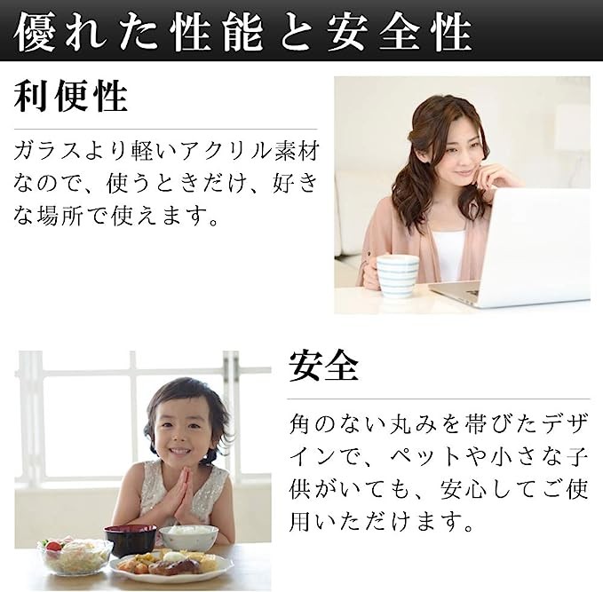 すっきりとしたシンプルなデザインを追求しました。ガラスより軽くて丈夫な高級アクリル素材を使用