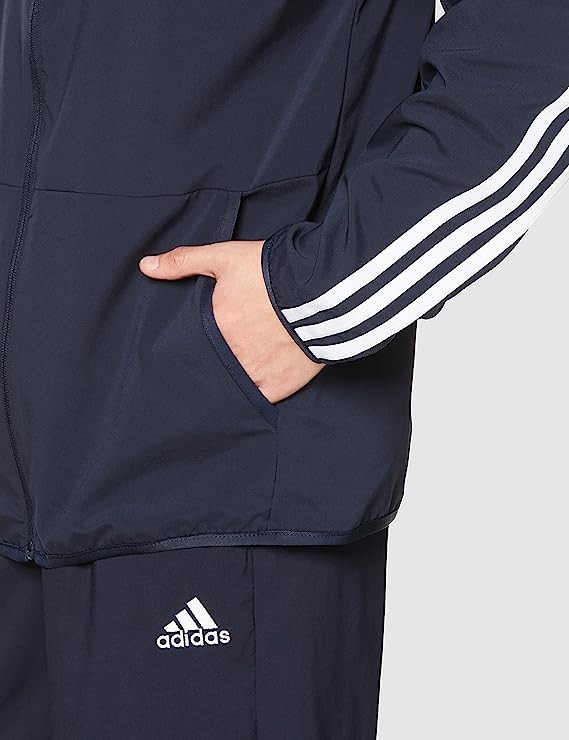 ブラック アディダス 3 ストライプ レギュラー フィット ライト ウーブン トラック トップ