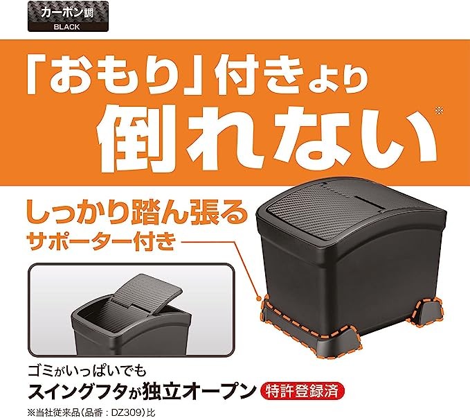もう「重り」ゴミ箱が倒れない 急停止や方向転換、悪路走行時のゴミ箱の転倒や滑りを防ぐ、踏む形状のサポーターが付属しています。