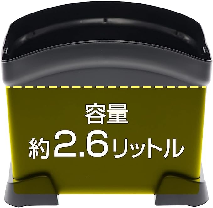 ゴミが溜まったら、片側のフタを持ち上げると左右が外れてゴミを捨てることができます(特許登録済) 大量のゴミが捨てられます 容量:約300g 2.6L