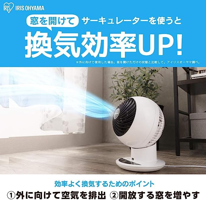 サーキュレーターを使えば素早く換気できます。3Dランダム送風でお部屋の空気を強力に混ぜます。